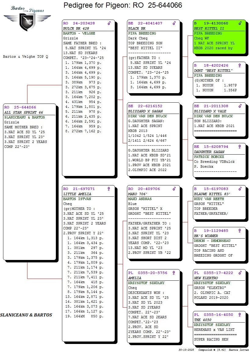 All these achievements confirm that success is not accidental but the result of sustained effort, clear vision, and genuine passion for pigeon racing. The Slăniceanu & Bartoș Loft – Arad thus becomes a true benchmark of excellence, proving that through devotion, precision, and elite genetic selection, Romania continues to strengthen its place among the European pigeon racing elite.
