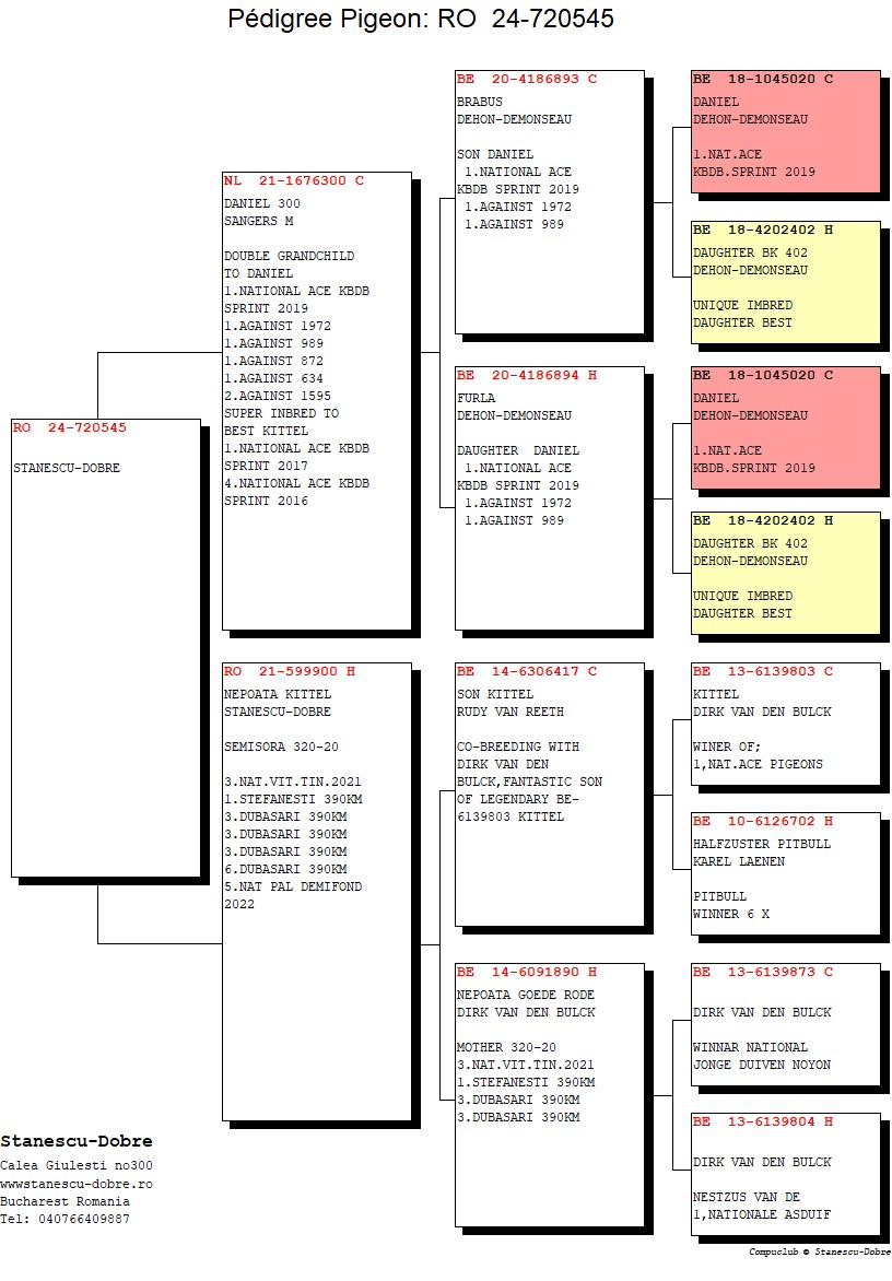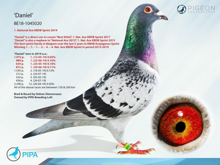 Each pigeon is accompanied by a complete pedigree, official race results, and references about prize-winning siblings, with the selection based exclusively on proven performance.