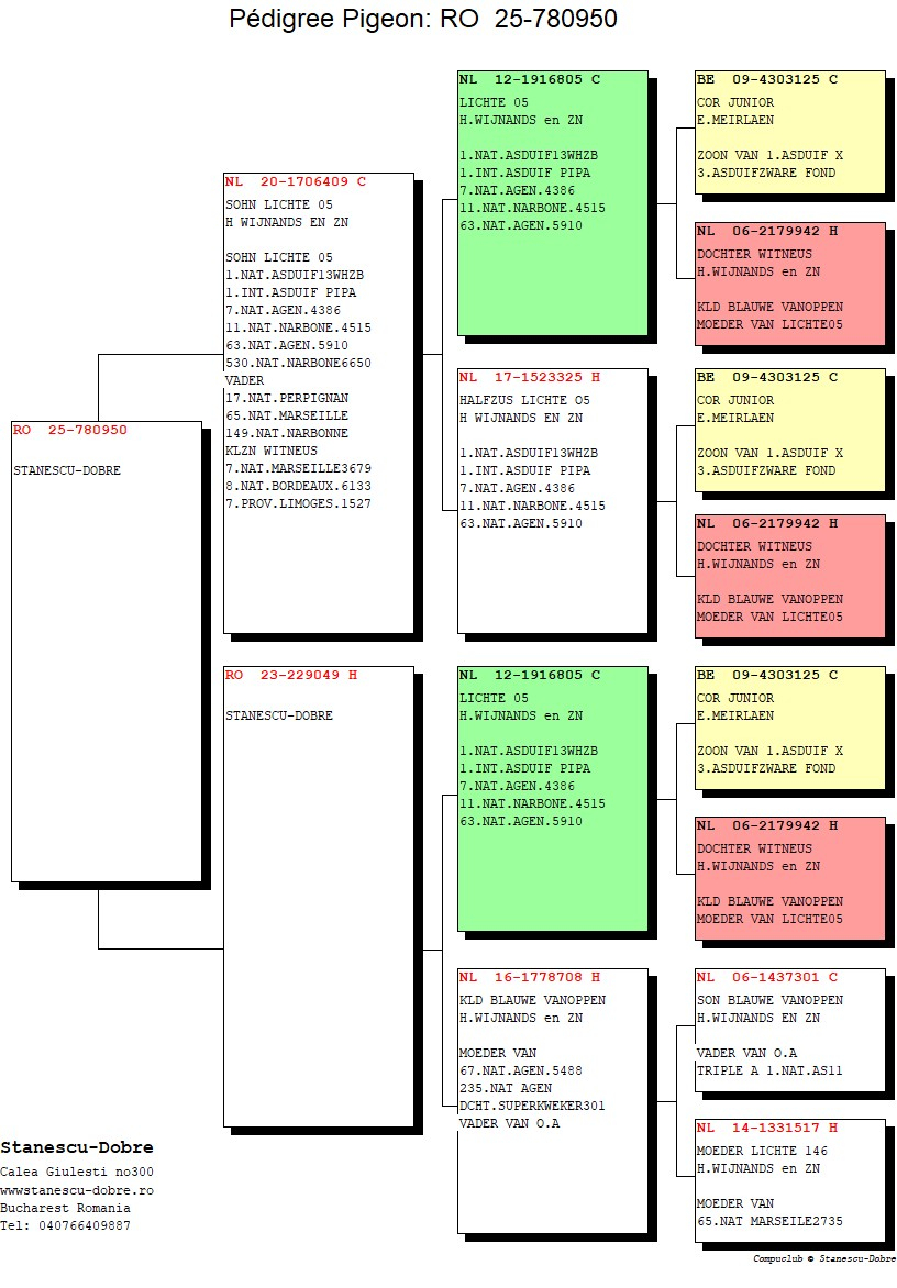 Each pigeon is accompanied by a complete pedigree, official race results, and references about prize-winning siblings, with the selection based exclusively on proven performance.