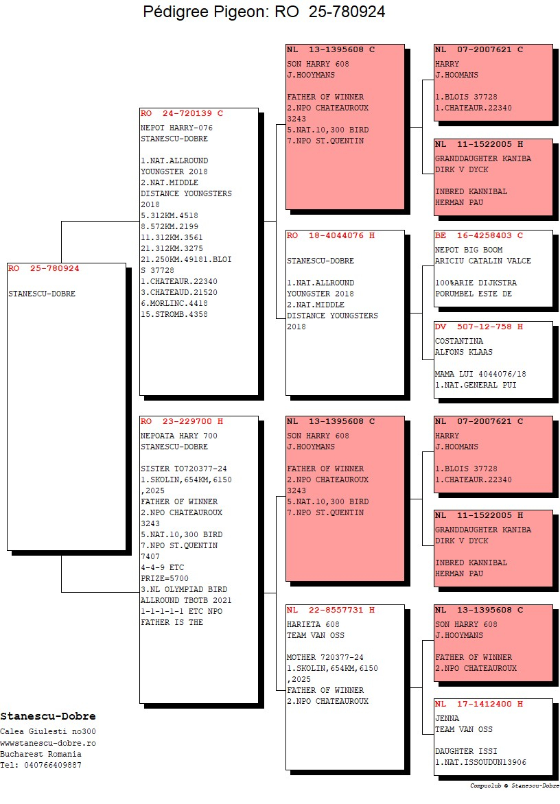 Each pigeon is accompanied by a complete pedigreeofficial race results, and references about prize-winning siblings, with the selection based exclusively on proven performance.