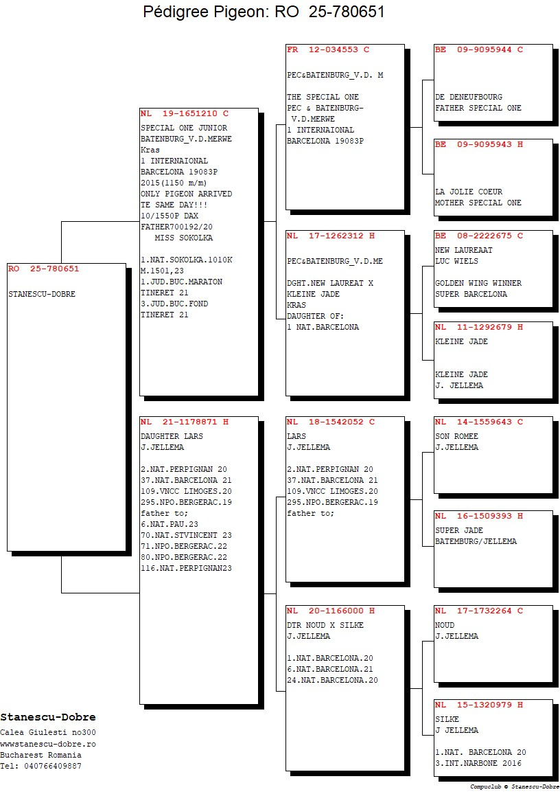 Each pigeon is accompanied by a complete pedigreeofficial race results, and references about prize-winning siblings, with the selection based exclusively on proven performance.