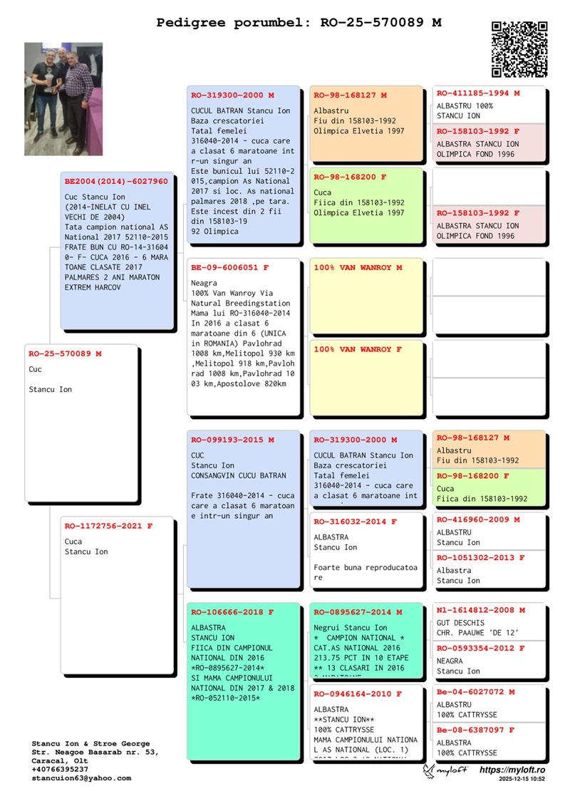 Today, with an impressive collection of trophies and vast experience, Stancu is not only a champion but also a mentor who inspires future generations of pigeon fanciers. Through his example, he conveys the passion for pigeon racing and the pursuit of excellence, becoming a model of dedication and integrity.