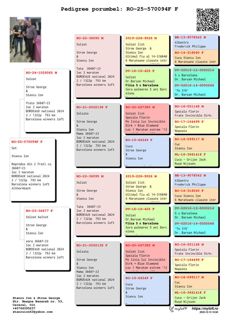 In conclusion, Ion Stancu is more than a pigeon breeder: he is a pioneer, an innovator, and a living legend of Romanian pigeon racing. Through his tireless work, the high standards he has set, and the elegance with which he turns each competition into a lesson of mastery, he continues to make history and elevate the prestige of this noble sport.