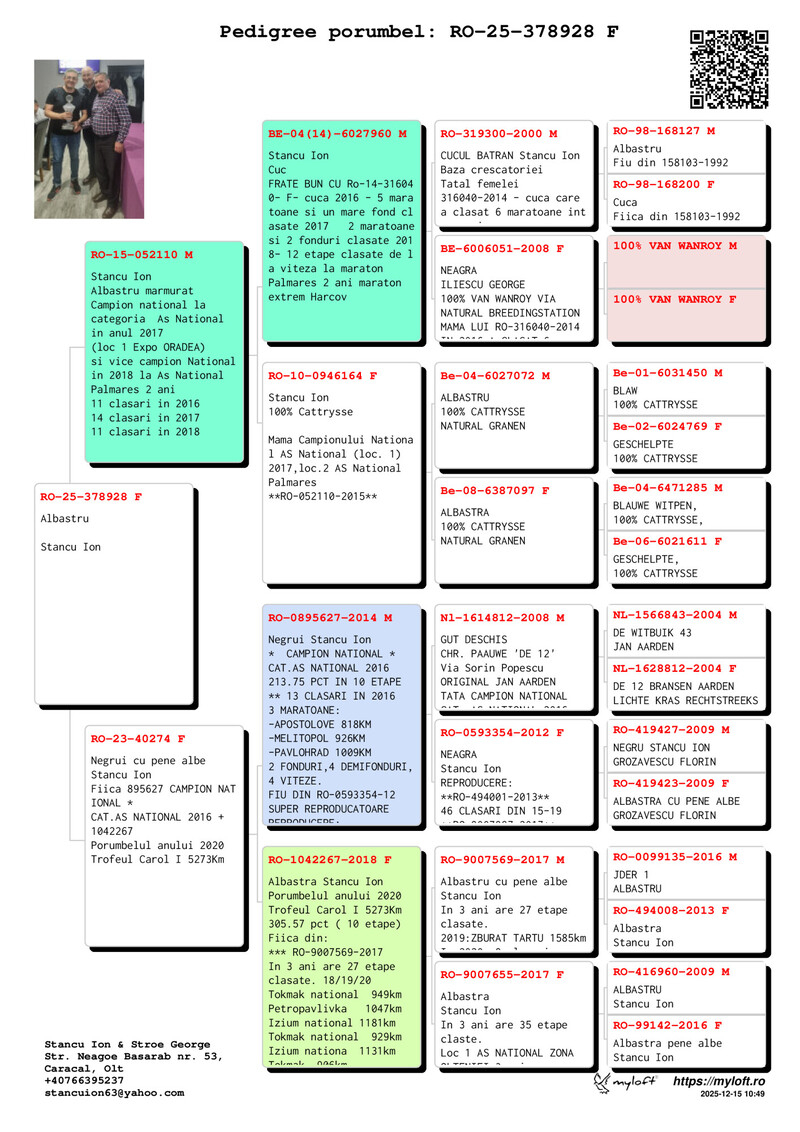 Today, with an impressive collection of trophies and vast experience, Stancu is not only a champion but also a mentor who inspires future generations of pigeon fanciers. Through his example, he conveys the passion for pigeon racing and the pursuit of excellence, becoming a model of dedication and integrity.