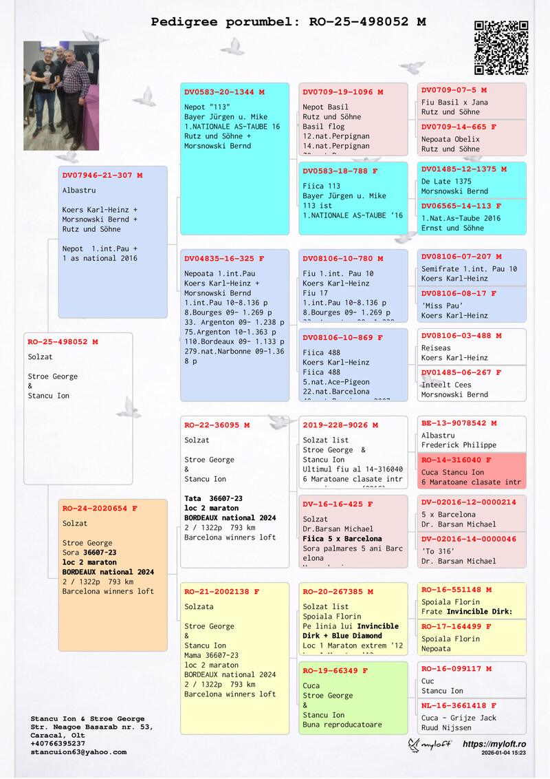 In conclusion, Ion Stancu is more than a pigeon breeder: he is a pioneer, an innovator, and a living legend of Romanian pigeon racing. Through his tireless work, the high standards he has set, and the elegance with which he turns each competition into a lesson of mastery, he continues to make history and elevate the prestige of this noble sport.