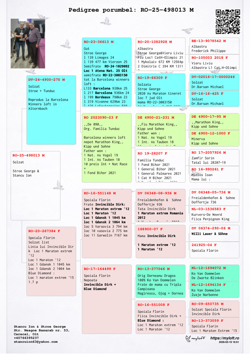 Today, with an impressive collection of trophies and vast experience, Stancu is not only a champion but also a mentor who inspires future generations of pigeon fanciers. Through his example, he conveys the passion for pigeon racing and the pursuit of excellence, becoming a model of dedication and integrity.
