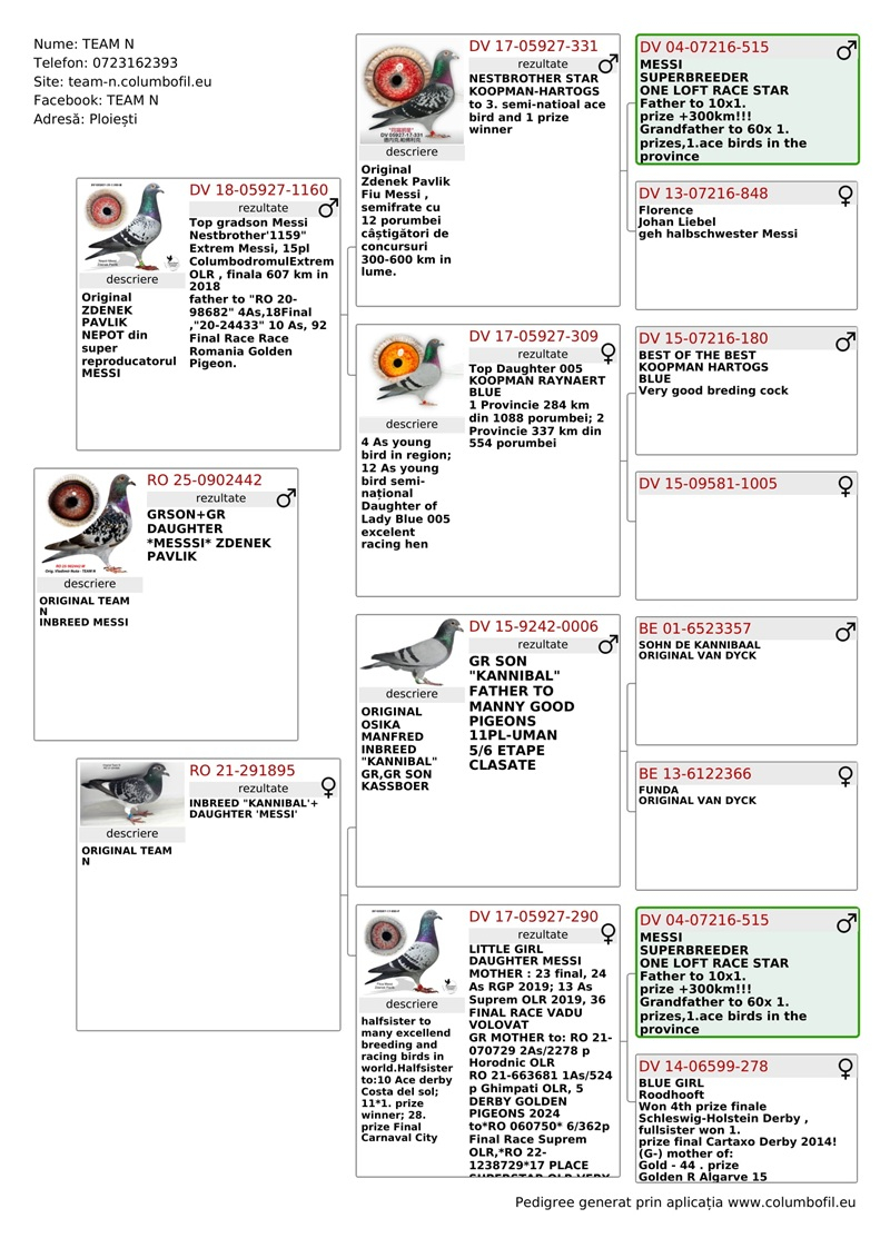 The consistent performances of Vladimir Nuța – Team N Ploiești over the past five years confirm not only the value of his genetic line but also his perseverance, organization, and strategic vision. With elite results and a constant presence in the top rankings of national and international one loft races, the team has established itself as a true reference in the world of pigeon racing.