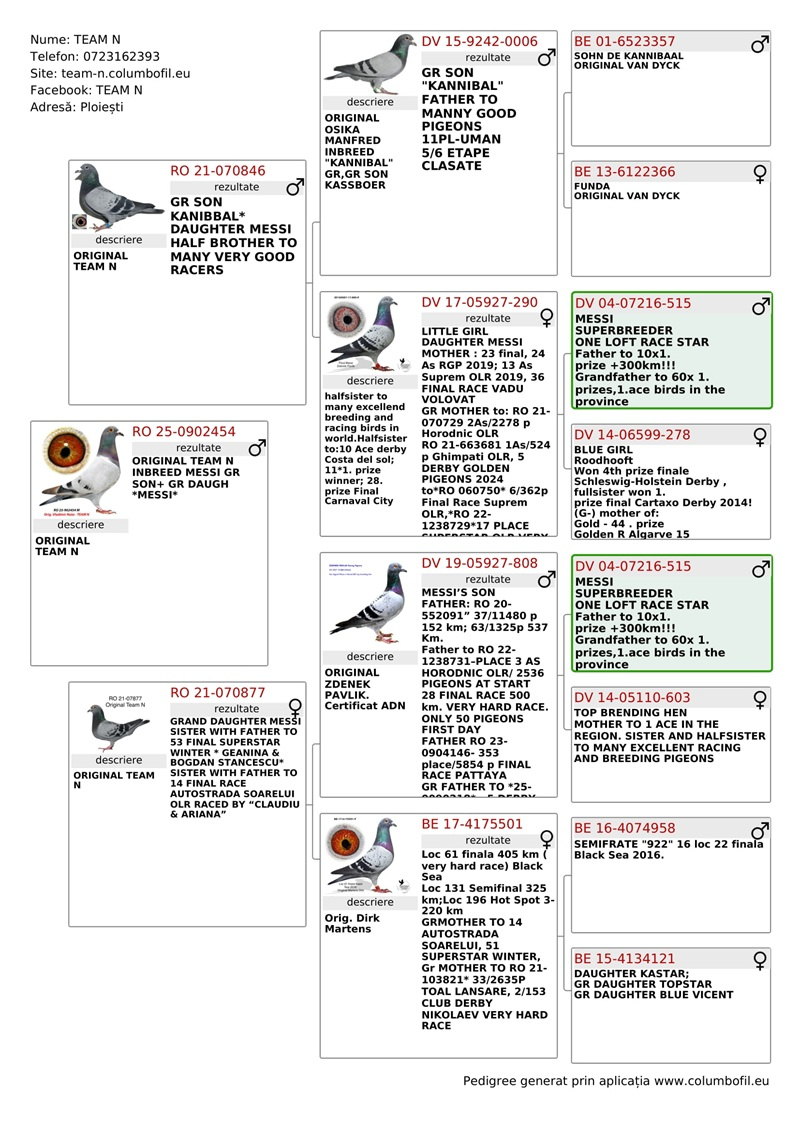 In recent years, Vladimir Nuța, a member of Team N Ploiești, has established himself as one of the most consistent and competitive Romanian pigeon fanciers, both nationally and internationally. The results achieved in top one loft races, where thousands of pigeons line up at the start, confirm the genetic value of his loft as well as his qualities as a strategic manager in this sport.