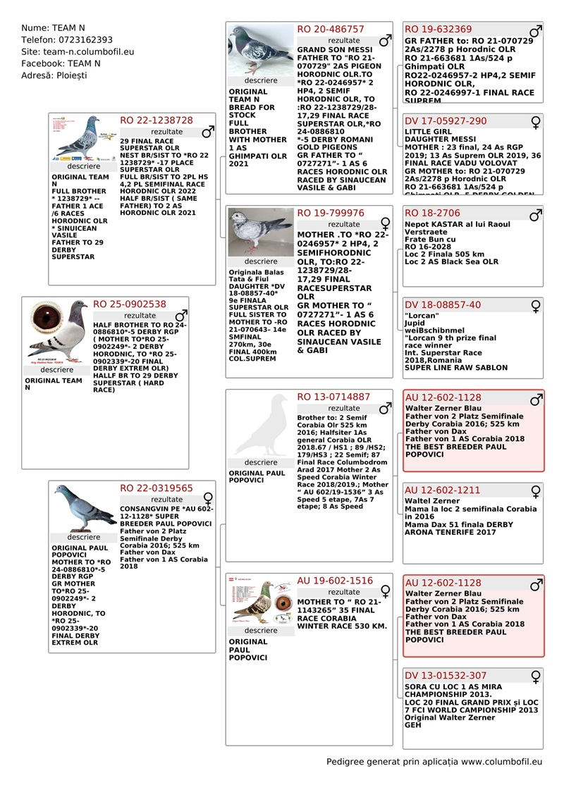 • RO 23-0727271 – 1st Place Ace (6 races, Horodnic OLR – partnership with S. & G. Sinăucean)