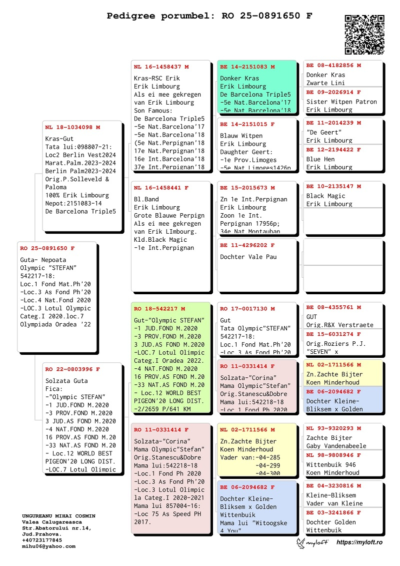 Through inspired acquisitions from renowned Romanian fanciers – such as Stănescu & Dobre, Cosmin Olteanu, and Cătălin Ariciu – Ungureanu succeeded in building a solid genetic foundation, upon which he later established his rise to the elite of local, regional, and national pigeon racing.