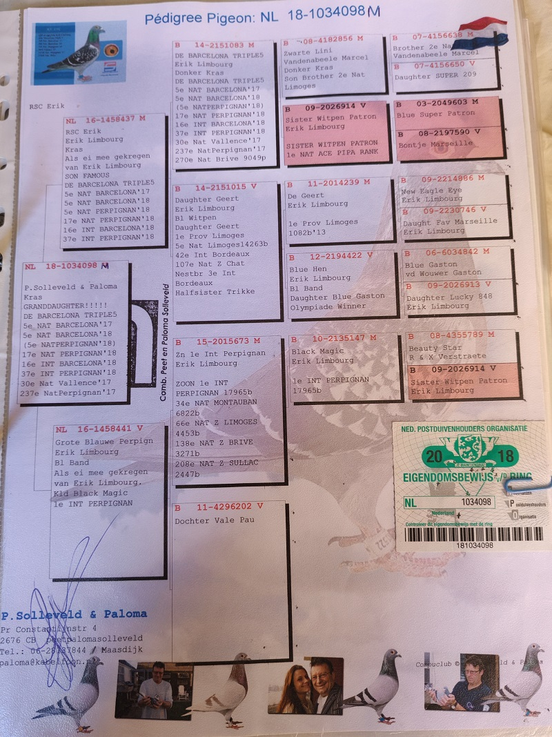 His determination to excel in long-distance categories continued in the 2023 season, when he triumphed in the Extreme Marathon category, further strengthening his position as a top competitor. At the same time, his recent genetic acquisitions – from prestigious bloodlines such as Jan Theelen, Gebr. Kuypers, and Jan Ernest – promise to sustain and enhance this upward trajectory.