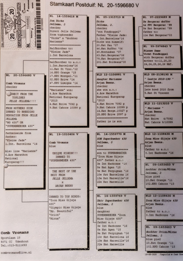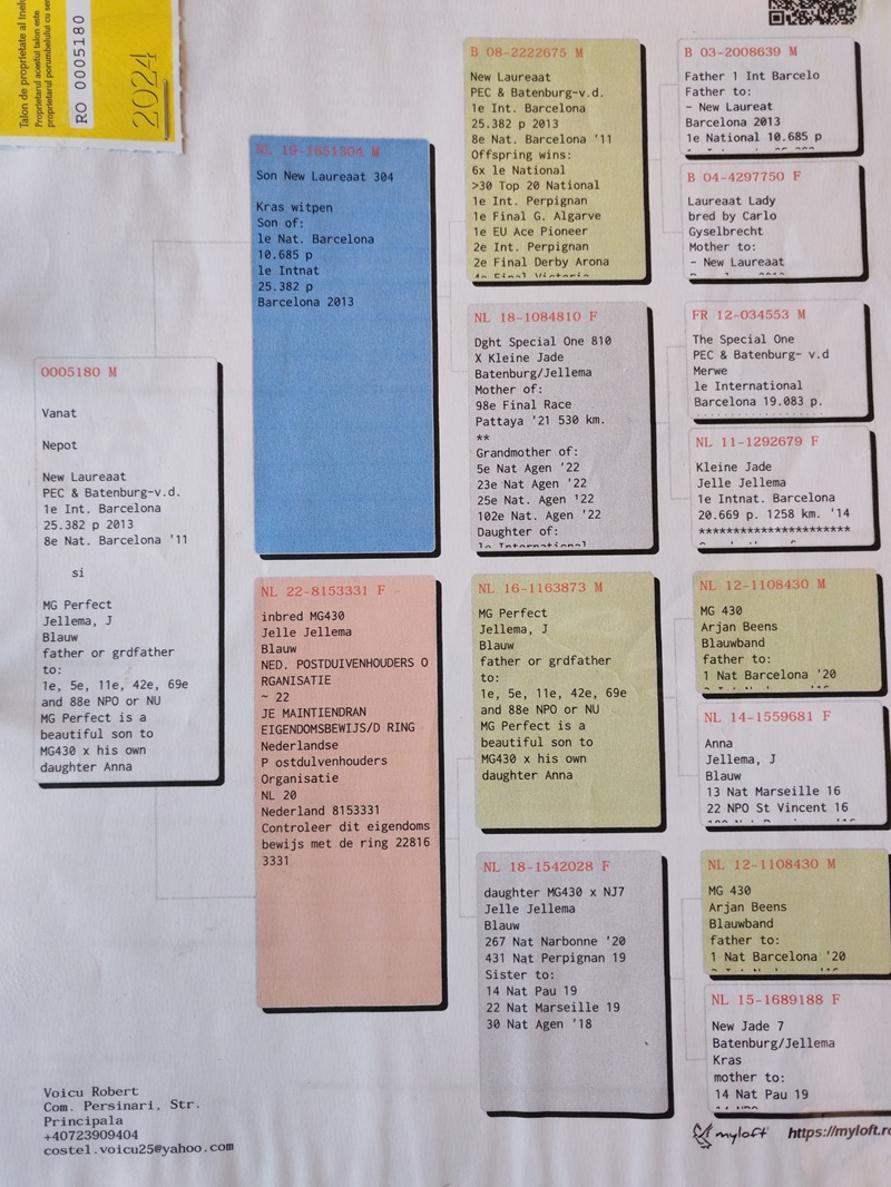His determination to excel in long-distance categories continued in the 2023 season, when he triumphed in the Extreme Marathon category, further strengthening his position as a top competitor. At the same time, his recent genetic acquisitions – from prestigious bloodlines such as Jan Theelen, Gebr. Kuypers, and Jan Ernest – promise to sustain and enhance this upward trajectory.