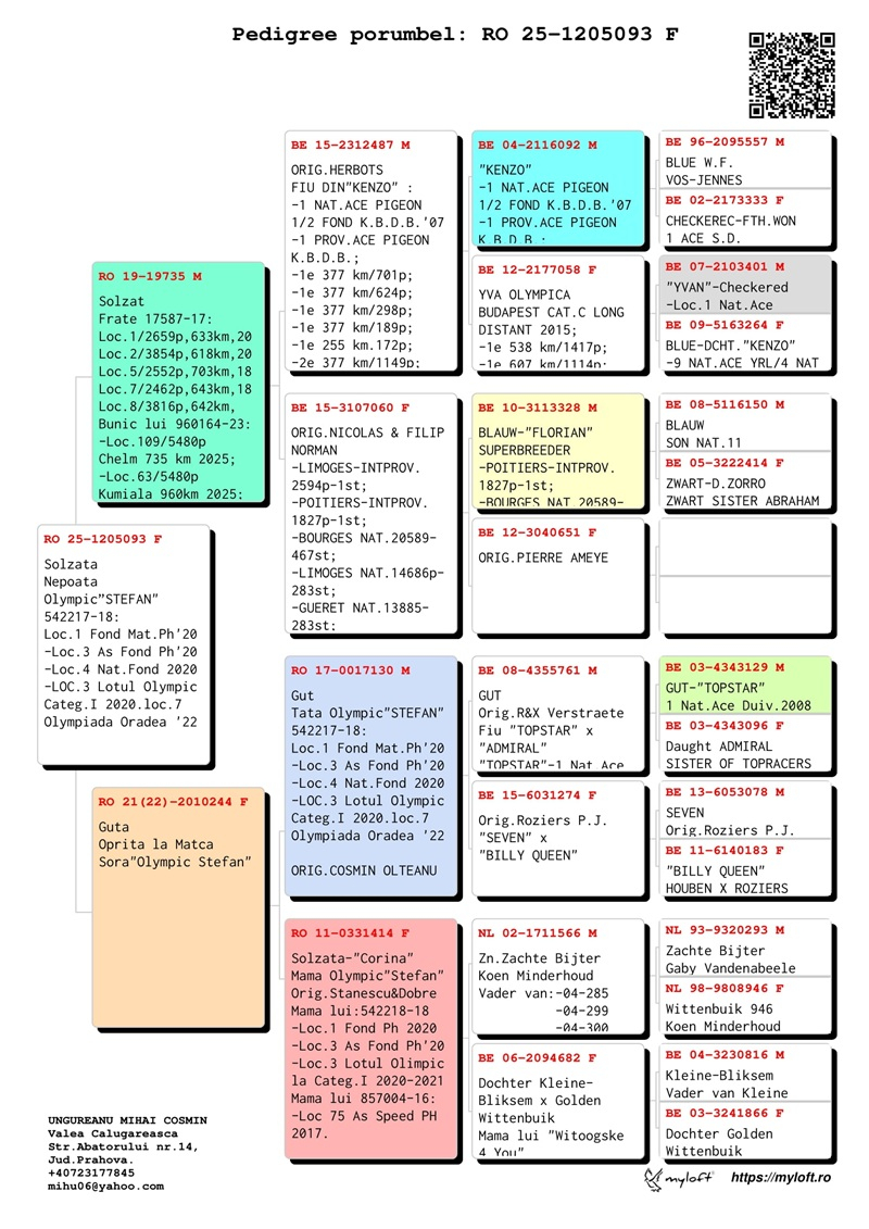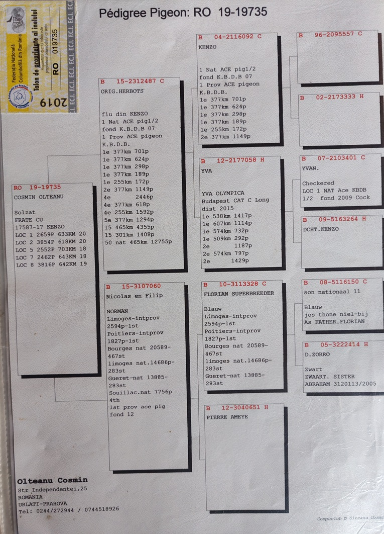 Through inspired acquisitions from renowned Romanian fanciers – such as Stănescu & Dobre, Cosmin Olteanu, and Cătălin Ariciu – Ungureanu succeeded in building a solid genetic foundation, upon which he later established his rise to the elite of local, regional, and national pigeon racing.