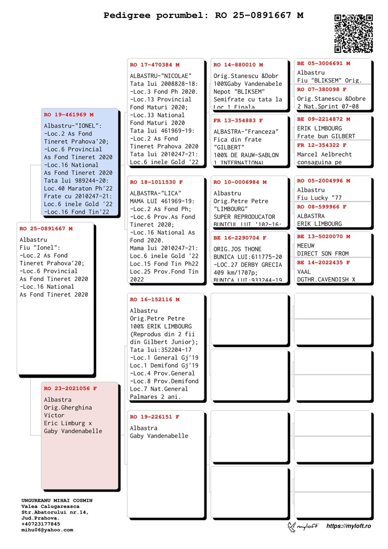 Through inspired acquisitions from renowned Romanian fanciers – such as Stănescu & Dobre, Cosmin Olteanu, and Cătălin Ariciu – Ungureanu succeeded in building a solid genetic foundation, upon which he later established his rise to the elite of local, regional, and national pigeon racing.