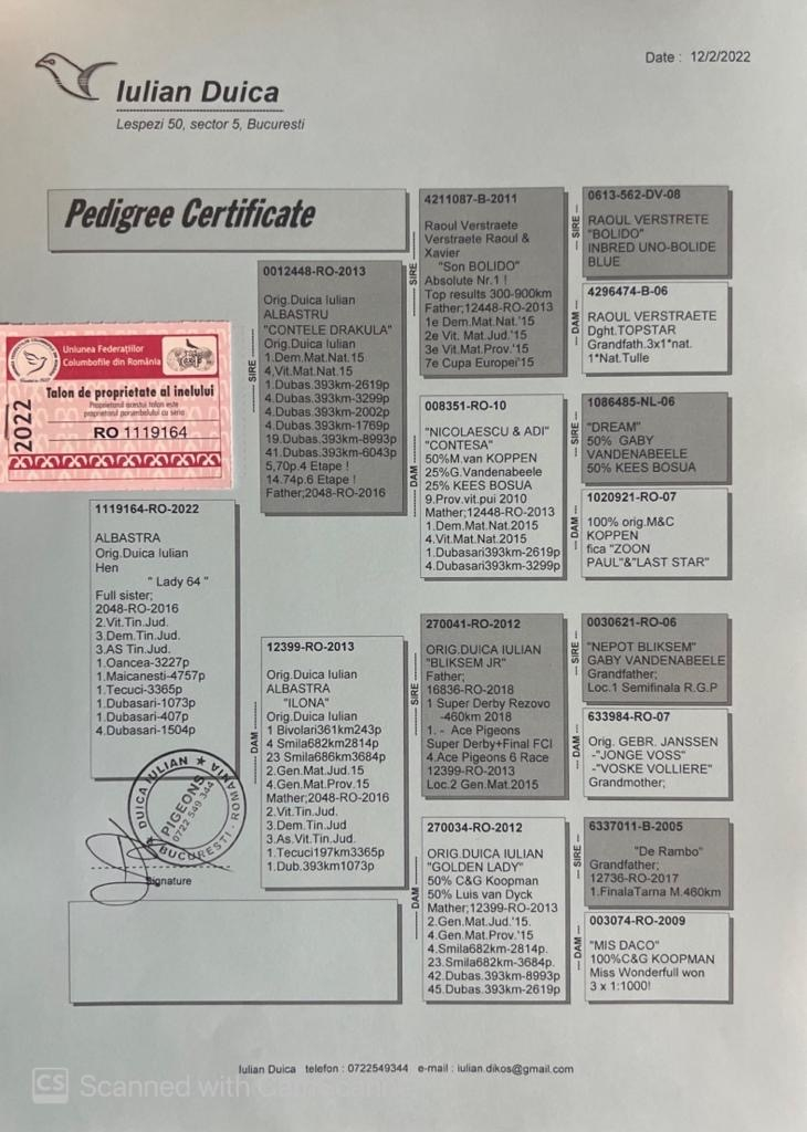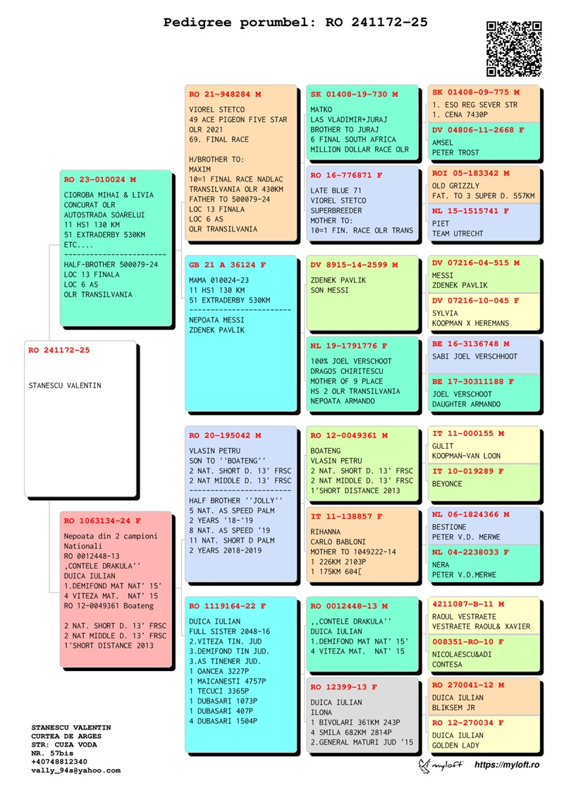 Through his consistent and diverse results, Valentin Stănescu stands out as one of the most accomplished pigeon fanciers in Romania, contributing significantly to the promotion of the national pigeon sport and to strengthening the prestige of Argeș County in competitive pigeon racing.