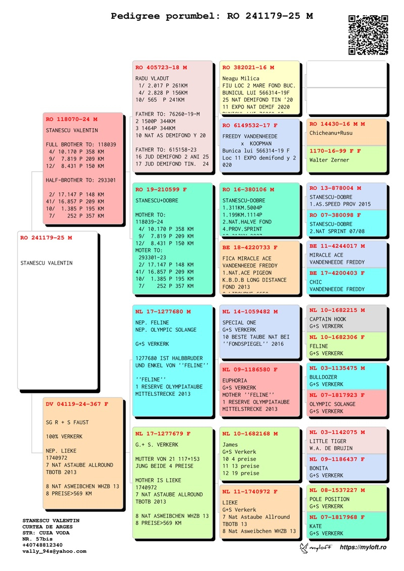 Through his consistent and diverse results, Valentin Stănescu stands out as one of the most accomplished pigeon fanciers in Romania, contributing significantly to the promotion of the national pigeon sport and to strengthening the prestige of Argeș County in competitive pigeon racing.