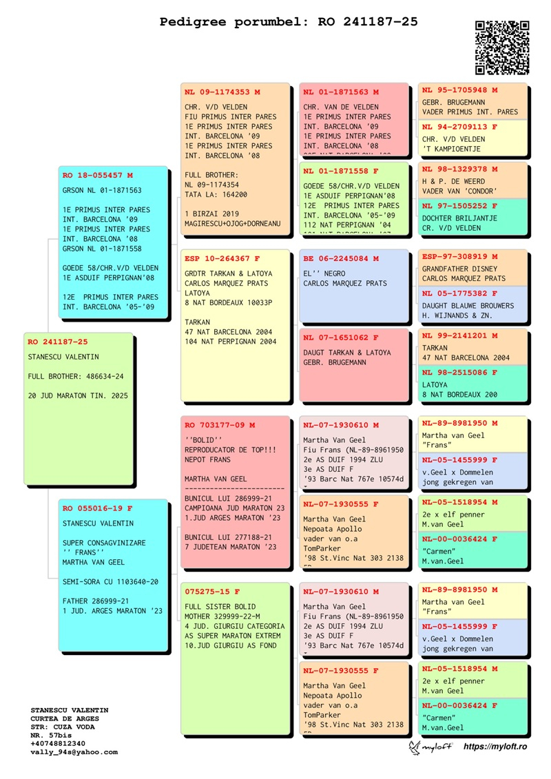 Through his consistent and diverse results, Valentin Stănescu stands out as one of the most accomplished pigeon fanciers in Romania, contributing significantly to the promotion of the national pigeon sport and to strengthening the prestige of Argeș County in competitive pigeon racing.