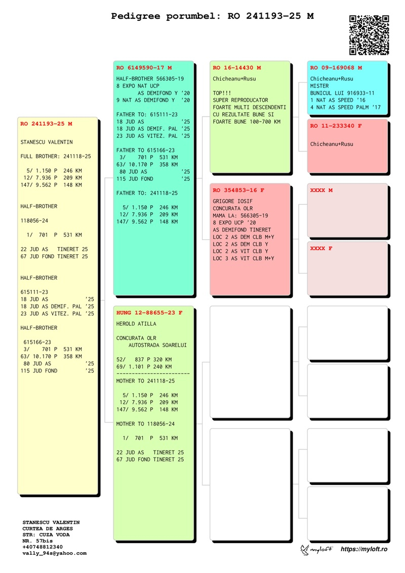 Through his consistent and diverse results, Valentin Stănescu stands out as one of the most accomplished pigeon fanciers in Romania, contributing significantly to the promotion of the national pigeon sport and to strengthening the prestige of Argeș County in competitive pigeon racing.
