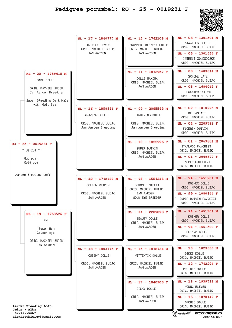 Aarden Breeding Loft România, situat în județul Alba, se evidențiază ca un reper remarcabil în Europa de Est, având drept obiectiv principal conservarea și promovarea trăsăturilor de excepție ale porumbeilor din linia Jan Aarden. Fondat cu câțiva ani în urmă, acest centru găzduiește exemplare de elită ale porumbeilor Aarden, provenite de la Machiel Buijk, considerat cel mai renumit crescător al acestei familii de porumbei la nivel mondial. Descendenții acestor păsări au obținut victorii impresionante în competiții de maraton de mare dificultate, având în linia lor genetică influența celebrului porumbel Dolle, prezent în aproape fiecare arbore genealogic.