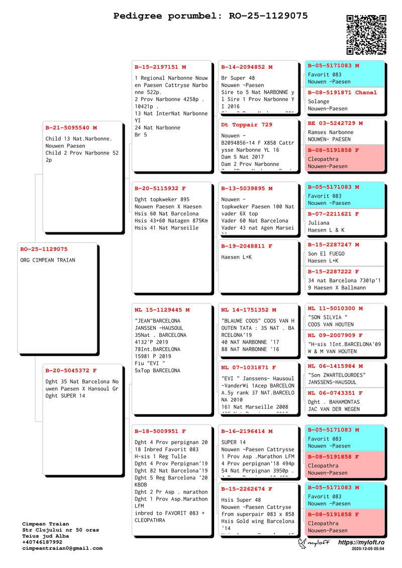 Traian Cîmpean se afirmă ca un crescător dedicat și profund cunoscător al columbofiliei, ceea ce îi permite să practice această disciplină la standarde de înaltă performanță. Încă de la începutul parcursului său, a înțeles că succesul este fundamentat pe o bază de reproducție de calitate superioară, iar rezultatele obținute ulterior au validat această viziune. Compartimentul său de reproducție a fost consolidat prin integrarea atent selectată a unor porumbei proveniți de la crescători de renume din România, precum și din linii genetice valoroase ale Europei de Vest.