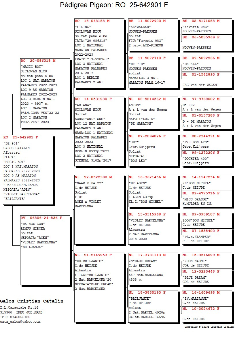 Ansamblul acestor rezultate evidențiază nu doar profesionalismul și consecvența în activitatea columbofilă, ci și o strategie bine definită de selecție genetică, pregătire și management sportiv. Performanțele obținute de porumbeii săi confirmă poziția lui Galoș Cătălin printre crescătorii de referință din regiune și contribuie la consolidarea prestigiului competițiilor de maraton și maraton extrem din România.