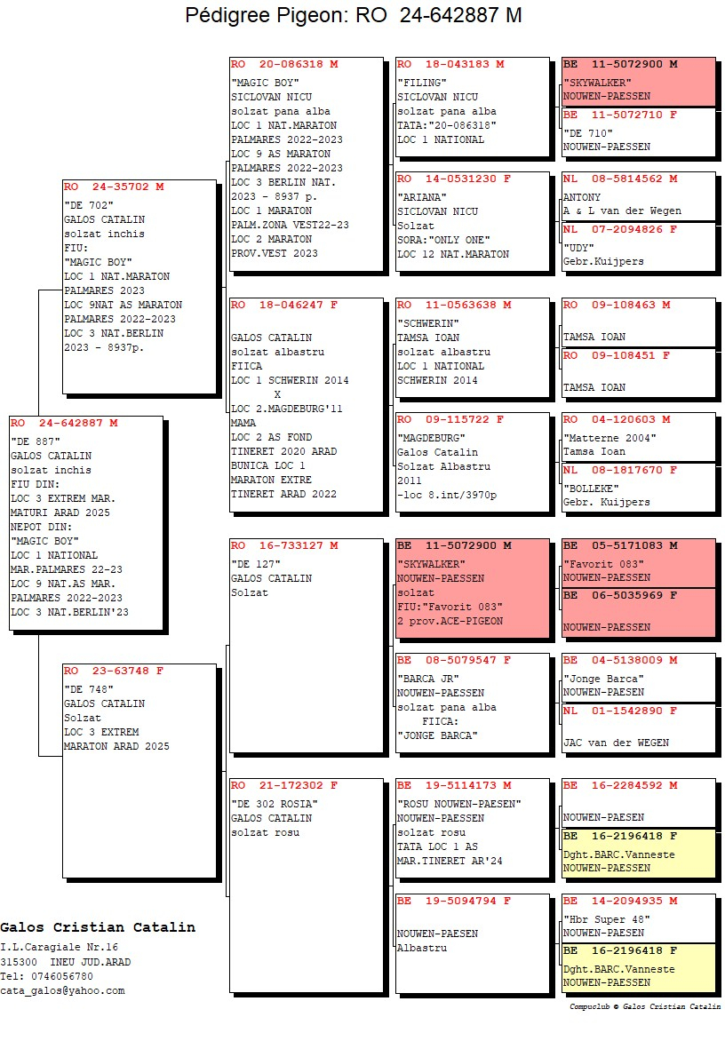 Ansamblul acestor rezultate evidențiază nu doar profesionalismul și consecvența în activitatea columbofilă, ci și o strategie bine definită de selecție genetică, pregătire și management sportiv. Performanțele obținute de porumbeii săi confirmă poziția lui Galoș Cătălin printre crescătorii de referință din regiune și contribuie la consolidarea prestigiului competițiilor de maraton și maraton extrem din România.