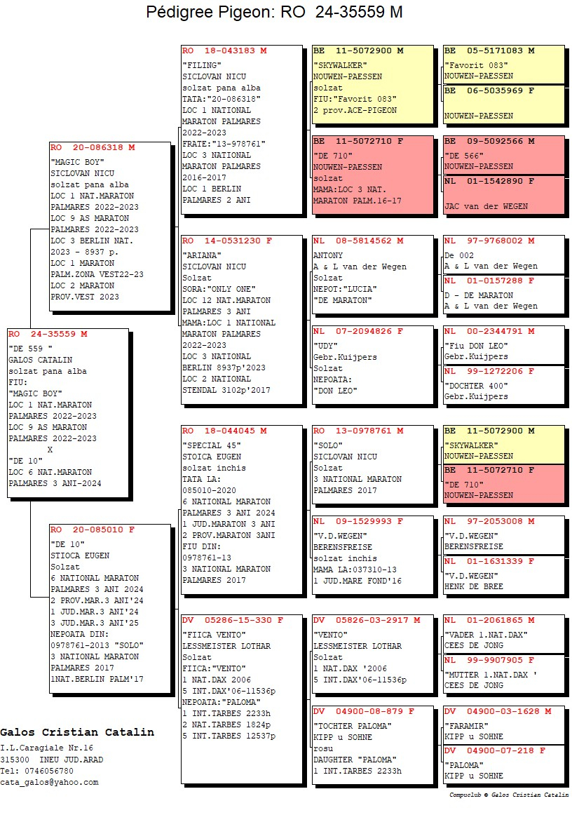 Ansamblul acestor rezultate evidențiază nu doar profesionalismul și consecvența în activitatea columbofilă, ci și o strategie bine definită de selecție genetică, pregătire și management sportiv. Performanțele obținute de porumbeii săi confirmă poziția lui Galoș Cătălin printre crescătorii de referință din regiune și contribuie la consolidarea prestigiului competițiilor de maraton și maraton extrem din România.