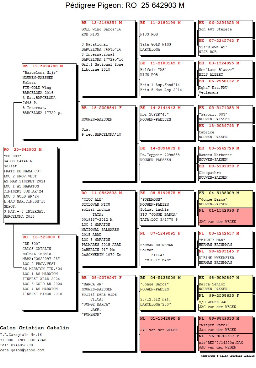 Ansamblul acestor rezultate evidențiază nu doar profesionalismul și consecvența în activitatea columbofilă, ci și o strategie bine definită de selecție genetică, pregătire și management sportiv. Performanțele obținute de porumbeii săi confirmă poziția lui Galoș Cătălin printre crescătorii de referință din regiune și contribuie la consolidarea prestigiului competițiilor de maraton și maraton extrem din România.