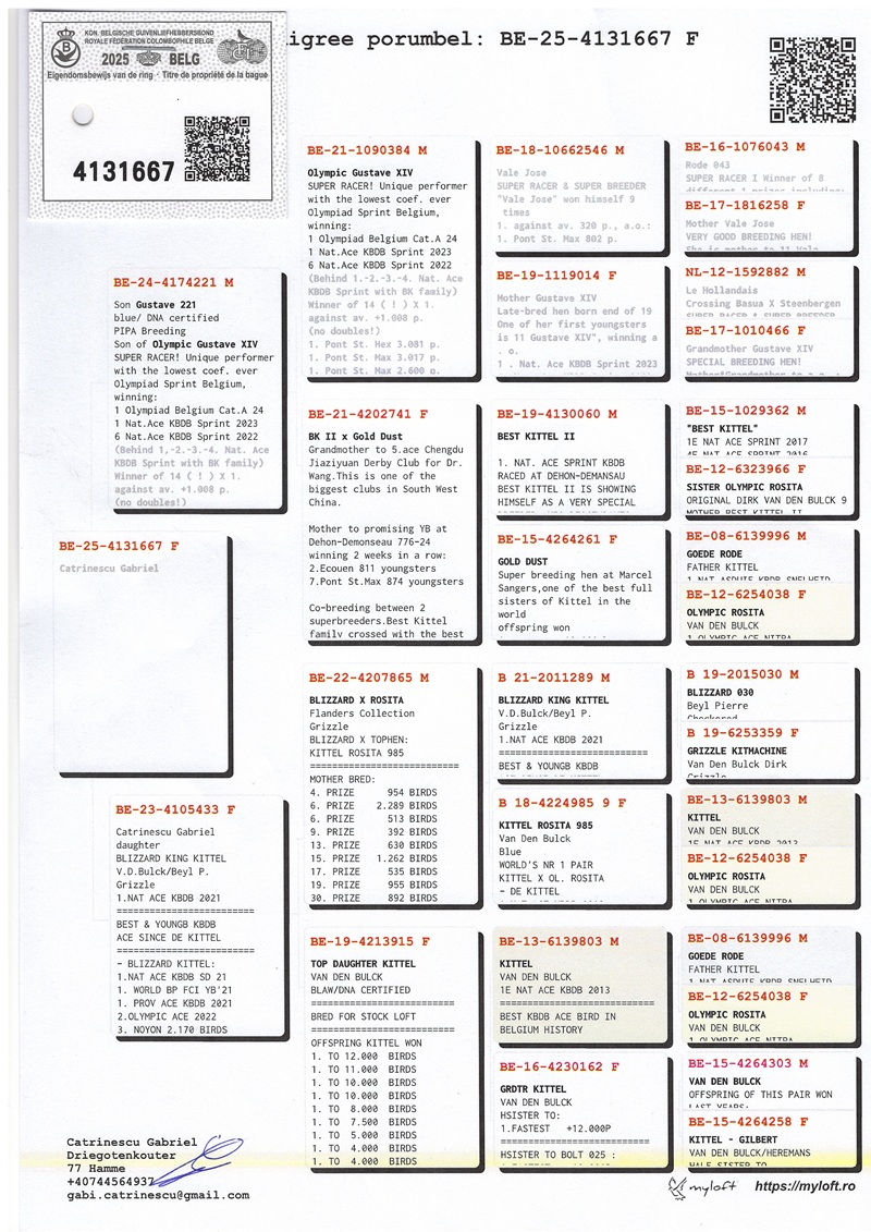 Gabriel Catrinescu nu propune promisiuni, ci continuitate în excelență. Pentru cei care caută calitate autentică și performanță demonstrată, această licitație reprezintă o invitație discretă, dar fermă, către esența columbofiliei moderne – acolo unde valoarea se confirmă în zbor.
