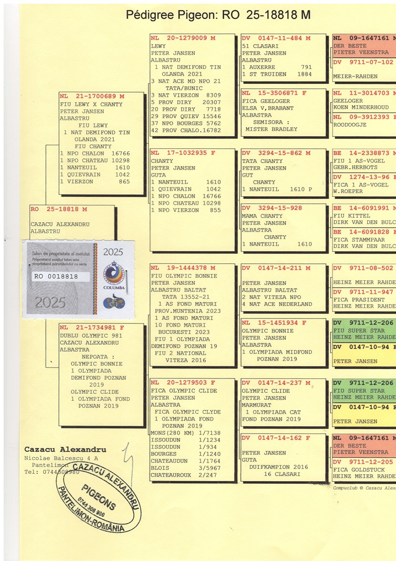 În columbofilia românească, puțini crescători reușesc să atingă performanțe de vârf în toate categoriile competiționale. Alexandru Cazacu, din București, reprezintă o excepție remarcabilă, cu rezultate notabile atât la nivel național, cât și provincial, de la Viteză și Demifond, până la Fond și Maraton. Prin profesionalism, viziune și o pasiune autentică pentru porumbelul voiajor, el s-a impus drept un model de succes în columbofilia română contemporană.