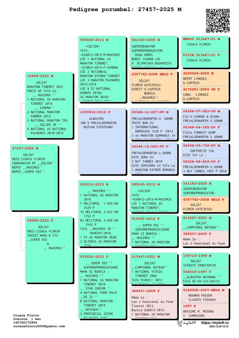 Pasionat de columbofilie încă din tinerețe, Cioacă Florin a transformat o pasiune într-o adevărată știință a performanței. Printr-o selecție riguroasă, bazată pe criterii genetice bine fundamentate, și printr-un antrenament metodic, a reușit să creeze o linie de porumbei recunoscută pentru echilibru, forță și spirit competițional. Rezultatele sale nu sunt întâmplătoare, ci rodul unei munci susținute, al disciplinei și al unei viziuni clare asupra direcției pe care trebuie să o urmeze columbofilia de performanță.