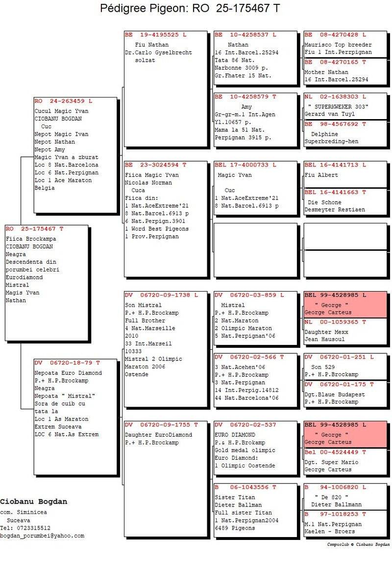 Pentru Bogdan Ciobanu, selecția genetică reprezintă fundamentul performanței. În viziunea sa, valoarea reală a unui porumbel se măsoară prin fapte, nu prin pedigree sonore. Astfel, crescătoria sa este alcătuită exclusiv din exemplare provenite din linii cu performanțe documentate: Jellema × Jellema, pentru anduranță extremă și stabilitate; Arjan Beens, pentru orientare excelentă în cursele de distanță lungă; Ko van Dommelen, pentru rezistență fizică și adaptare la fonduri grele; și MG 430, exemplu de consangvinizare controlată, menită să conserve trăsăturile dominante ale liniei.