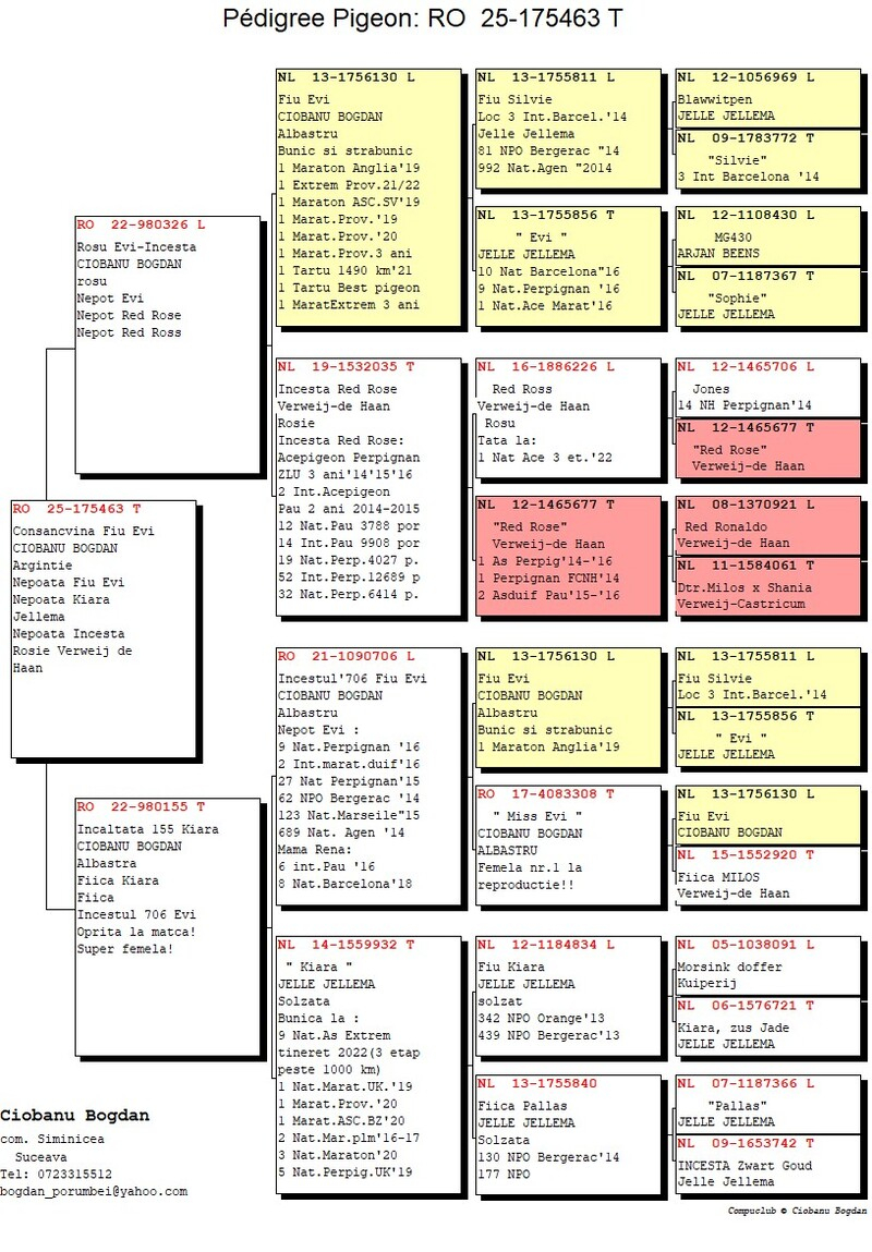 Pentru Bogdan Ciobanu, selecția genetică reprezintă fundamentul performanței. În viziunea sa, valoarea reală a unui porumbel se măsoară prin fapte, nu prin pedigree sonore. Astfel, crescătoria sa este alcătuită exclusiv din exemplare provenite din linii cu performanțe documentate: Jellema × Jellema, pentru anduranță extremă și stabilitate; Arjan Beens, pentru orientare excelentă în cursele de distanță lungă; Ko van Dommelen, pentru rezistență fizică și adaptare la fonduri grele; și MG 430, exemplu de consangvinizare controlată, menită să conserve trăsăturile dominante ale liniei.