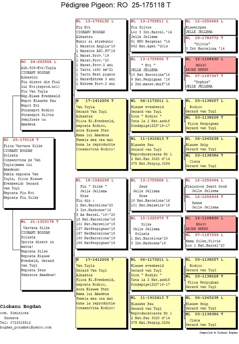 Performanțele sale dovedite în competiții atestă o viziune profesionistă și consecventă. De-a lungul anilor, crescătorul din Siminicea a obținut clasări multiple în Top 10 Național la categoriile Maraton și Fond, a ocupat locul 1 județean Suceava în etape de 800–1000 km și a înregistrat rezultate remarcabile în curse internaționale de mare dificultate, precum cele desfășurate în Ucraina și Polonia (exemplu: Krasnodon). De asemenea, participarea constantă în campionatul Burdujeni–Suceava, considerat unul dintre cele mai competitive din țară, confirmă constanța și valoarea liniei sale de zbor.