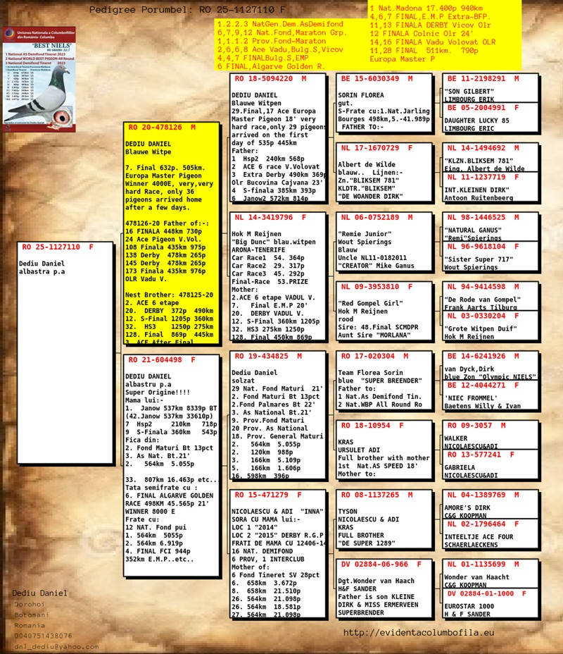 Dediu este unul dintre crescătorii de vârf din județul Botoșani, câștigând premii importante la nivel local, provincial și național. Performanțele sale remarcabile evidențiază pasiunea și dedicarea sa pentru columbofilie. Succesul său nu se datorează doar talentului, ci și strategiilor bine concepute și efortului susținut, chiar și în fața unui context competitiv nefavorabil.