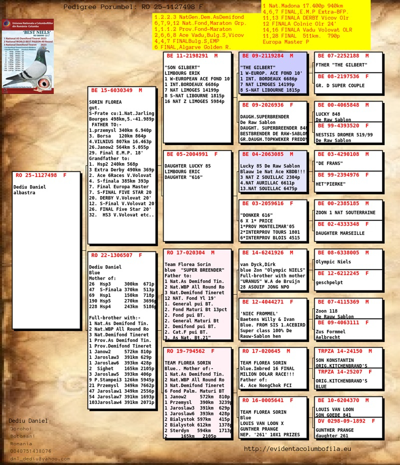 Dediu este unul dintre crescătorii de vârf din județul Botoșani, câștigând premii importante la nivel local, provincial și național. Performanțele sale remarcabile evidențiază pasiunea și dedicarea sa pentru columbofilie. Succesul său nu se datorează doar talentului, ci și strategiilor bine concepute și efortului susținut, chiar și în fața unui context competitiv nefavorabil.