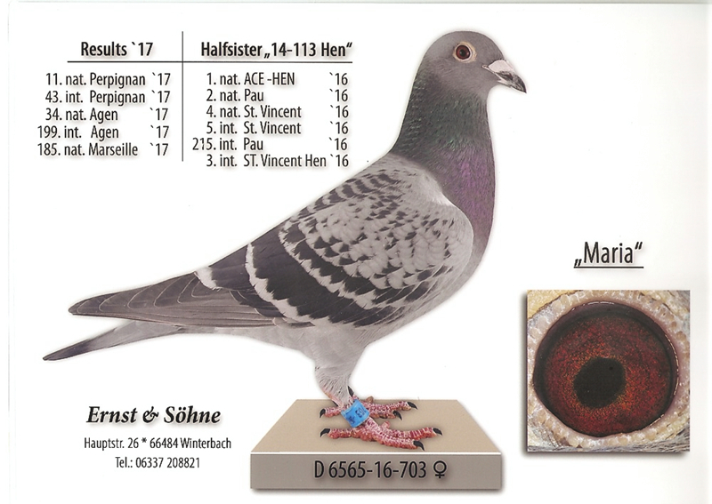 Până în 2023, familia Ernst și-a menținut nivelul ridicat de performanță, obținând clasări de frunte la competiții importante precum Barcelona, Arcis-sur-Aube, Vivonne, Auxerre și Saint Dizier, atât pe plan național, cât și internațional. Această constanță reflectă nu doar valoarea genetică a porumbeilor, ci și rigoarea, devotamentul și pasiunea care definesc activitatea familiei Ernst, confirmând statutul său de model de excelență în columbofilie.