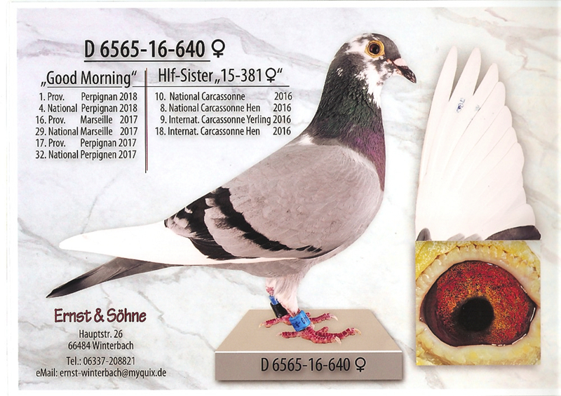 Performanțele constante au fost confirmate și prin clasări de top în ierarhiile naționale germane. În anul 2019, familia Ernst a ocupat locul al treilea în clasamentul național pentru cursele internaționale, cu rezultate remarcabile la etape precum Pau, Barcelona, Saint Vincent, Marseille, Narbonne, Brive și Perpignan. În 2020, echipa s-a situat pe locul 20 în clasamentul național al curselor internaționale, obținând totodată titlul de Porumbel Ace nr. 1 al Germaniei la această categorie.