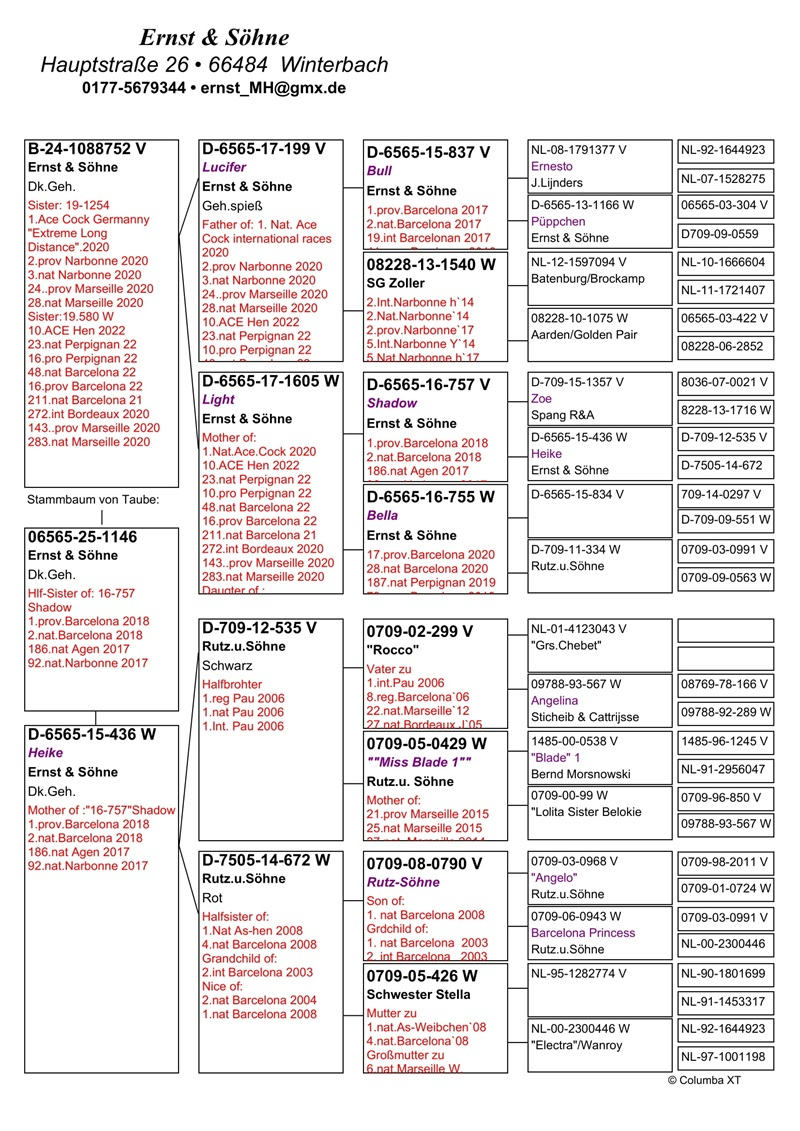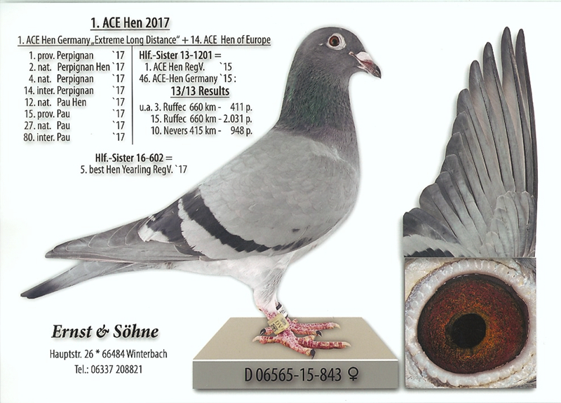 Performanțele constante au fost confirmate și prin clasări de top în ierarhiile naționale germane. În anul 2019, familia Ernst a ocupat locul al treilea în clasamentul național pentru cursele internaționale, cu rezultate remarcabile la etape precum Pau, Barcelona, Saint Vincent, Marseille, Narbonne, Brive și Perpignan. În 2020, echipa s-a situat pe locul 20 în clasamentul național al curselor internaționale, obținând totodată titlul de Porumbel Ace nr. 1 al Germaniei la această categorie.