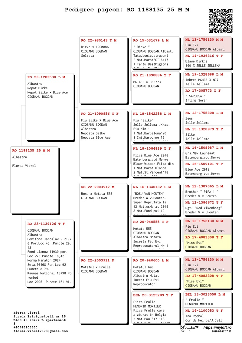În plus, atât calitatea porumbeilor, cât și măiestria crescătorului au contribuit la performanțele obținute, printre care se numără clasarea pe locul 8 în clasamentul județean Maraton Extrem Tineret, în cadrul uneia dintre cele mai puternice grupări columbofile din țară.