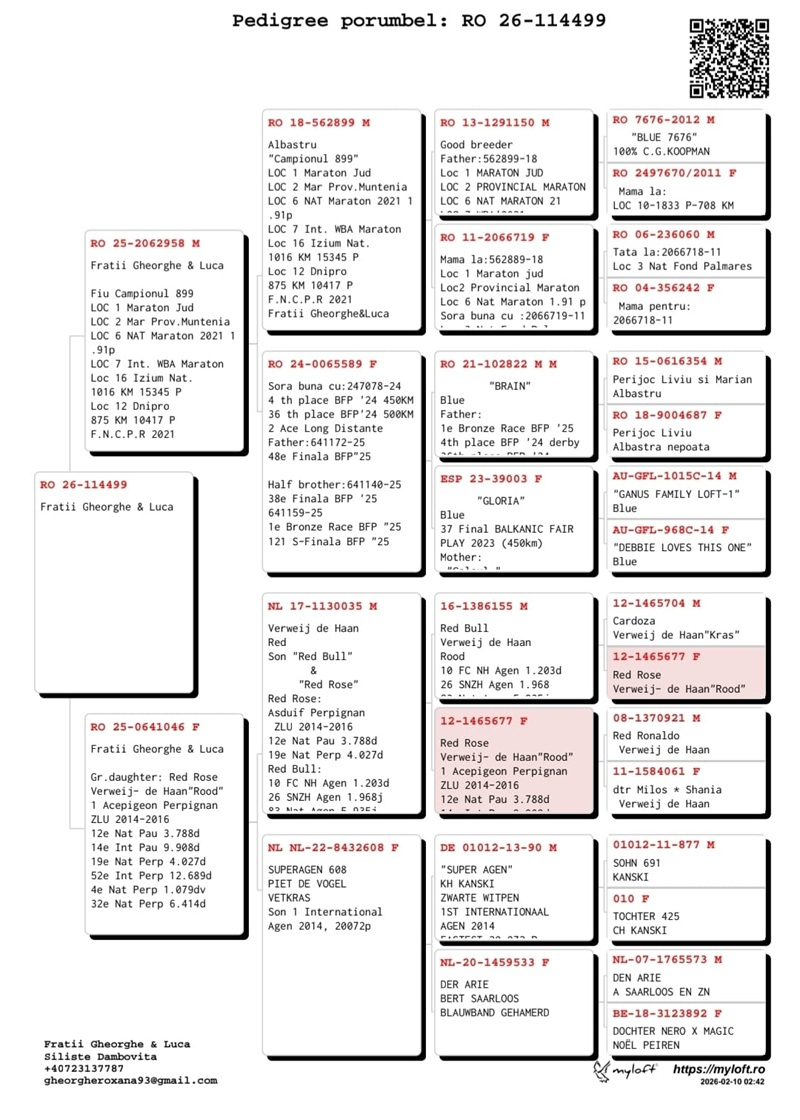 Viziunea lor ambițioasă pentru viitor este susținută de investiții importante în genetică, demonstrând angajamentul lor pentru performanță. Recent, voliera lor a fost îmbogățită cu porumbei de top achiziționați de la crescători consacrați în categoria maraton: