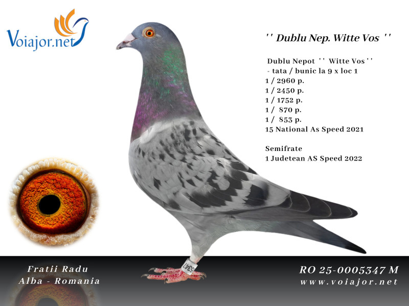 Familia Radu (Echipa BRO) din Cugir, județul Alba, reprezintă un nume de referință în columbofilia românească, fiind recunoscută pentru pasiunea și performanțele obținute în competițiile de viteză și demifond pe distanțe de 100 până la 500 de kilometri. De-a lungul anilor, echipa a înregistrat rezultate deosebite la nivel județean, provincial și național, fiind recunoscută în special pentru succesul în competițiile destinate puilor. Într-o regiune cunoscută pentru condițiile dificile de zbor, familia Radu a demonstrat că, prin muncă susținută și prin valorificarea unor porumbei de calitate, pot fi atinse performanțe notabile pe plan național.