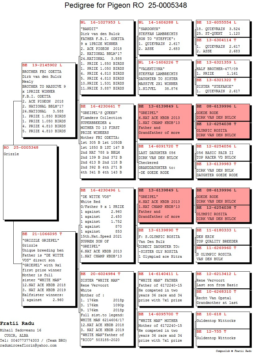 Pentru a-și întări linia competițională, familia Radu a achiziționat pui de la campionii naționali belgieni specializați în viteza, porumbei ce au contribuit semnificativ la succesul echipei.