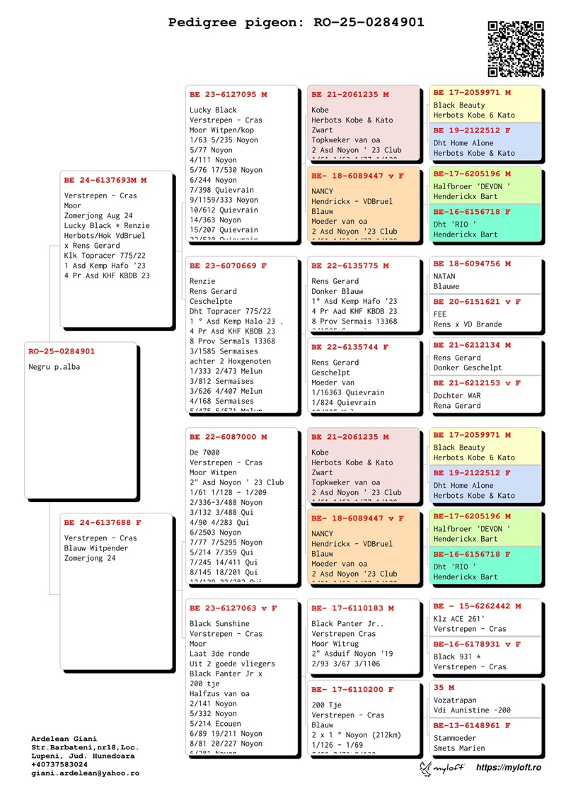 În prezent, domnul Ardelean scoate la vânzare un grup de 12 porumbei cu origini de elită, destinați să ducă mai departe tradiția succesului. Rezultatele obținute de crescători care au introdus acești porumbei în loturile lor confirmă valoarea lor genetică: