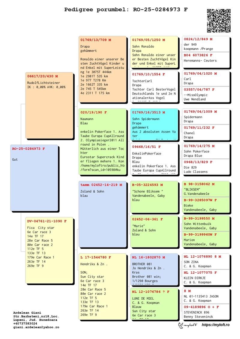În prezent, domnul Ardelean scoate la vânzare un grup de 12 porumbei cu origini de elită, destinați să ducă mai departe tradiția succesului. Rezultatele obținute de crescători care au introdus acești porumbei în loturile lor confirmă valoarea lor genetică: