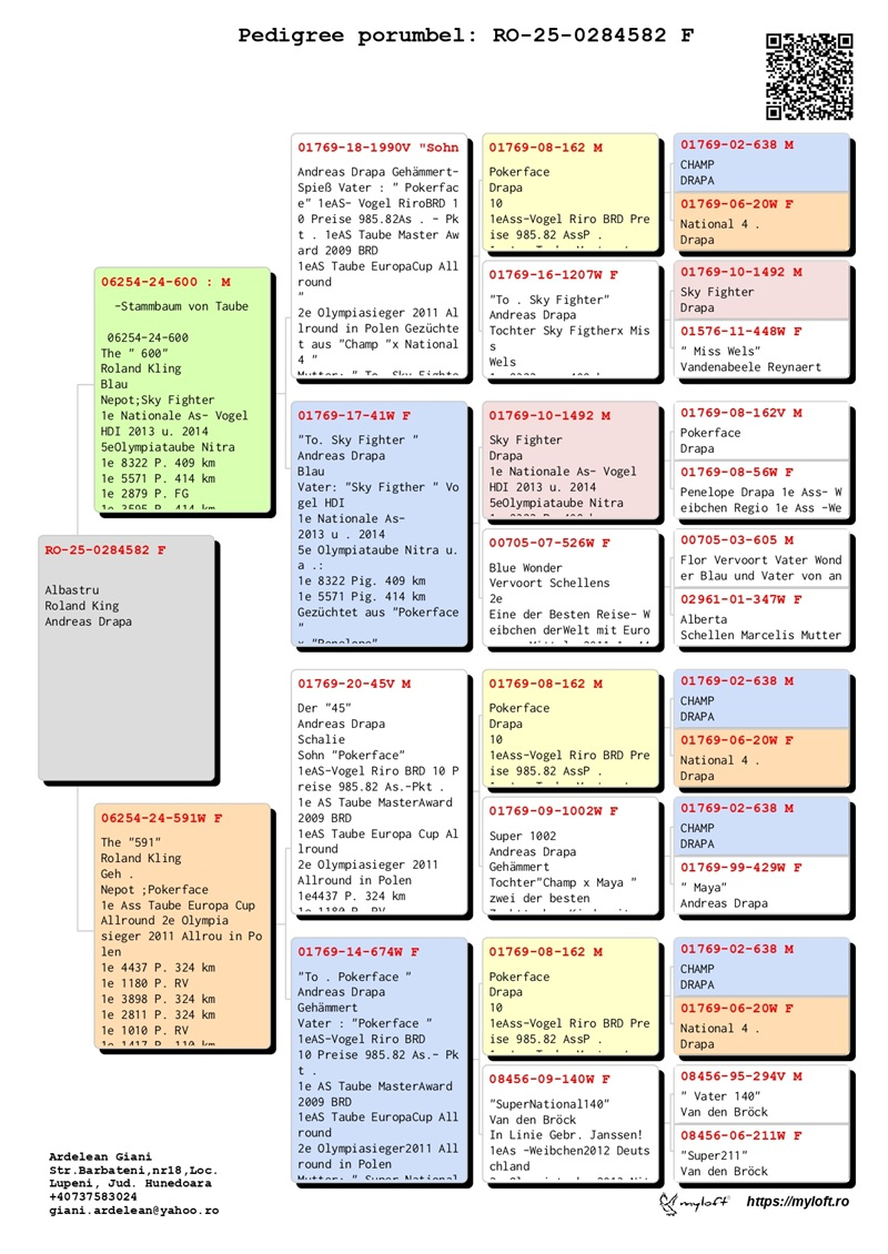 În prezent, domnul Ardelean scoate la vânzare un grup de 12 porumbei cu origini de elită, destinați să ducă mai departe tradiția succesului. Rezultatele obținute de crescători care au introdus acești porumbei în loturile lor confirmă valoarea lor genetică: