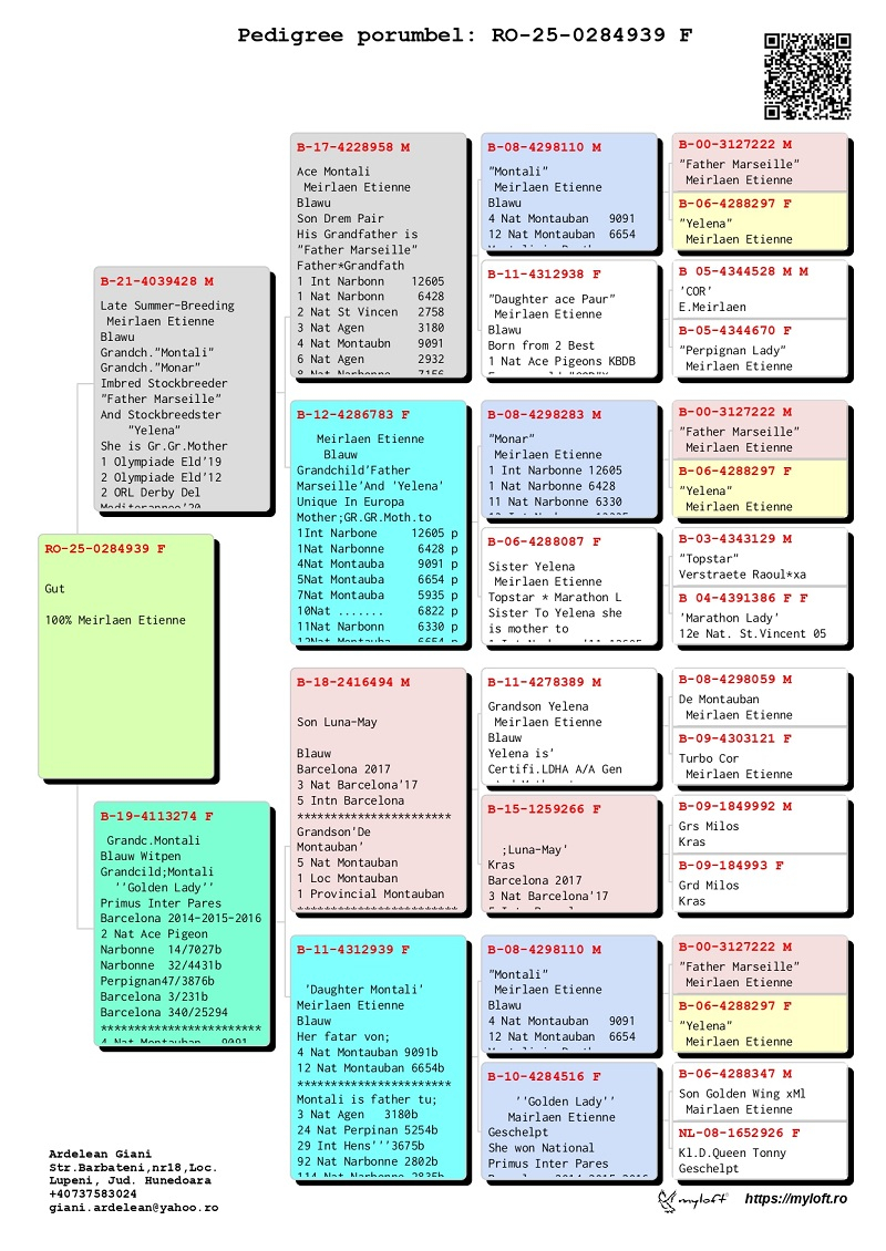 În prezent, domnul Ardelean scoate la vânzare un grup de 12 porumbei cu origini de elită, destinați să ducă mai departe tradiția succesului. Rezultatele obținute de crescători care au introdus acești porumbei în loturile lor confirmă valoarea lor genetică: