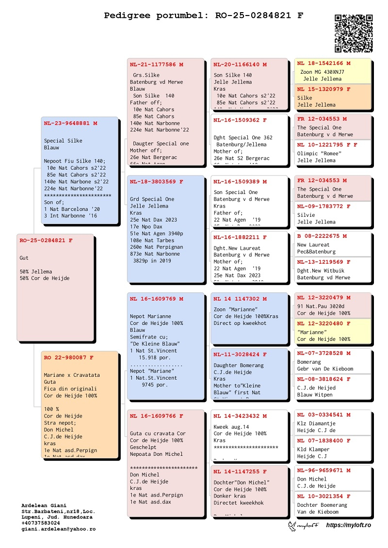 În prezent, domnul Ardelean scoate la vânzare un grup de 12 porumbei cu origini de elită, destinați să ducă mai departe tradiția succesului. Rezultatele obținute de crescători care au introdus acești porumbei în loturile lor confirmă valoarea lor genetică: