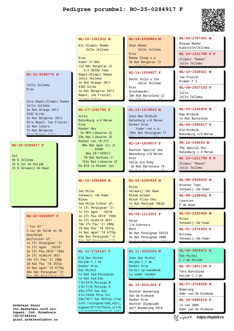 În prezent, domnul Ardelean scoate la vânzare un grup de 12 porumbei cu origini de elită, destinați să ducă mai departe tradiția succesului. Rezultatele obținute de crescători care au introdus acești porumbei în loturile lor confirmă valoarea lor genetică: