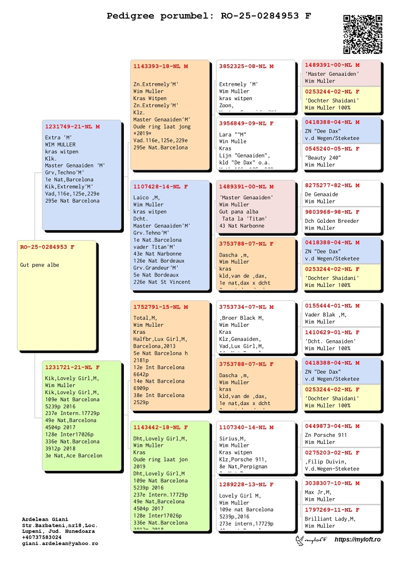 În prezent, domnul Ardelean scoate la vânzare un grup de 12 porumbei cu origini de elită, destinați să ducă mai departe tradiția succesului. Rezultatele obținute de crescători care au introdus acești porumbei în loturile lor confirmă valoarea lor genetică: